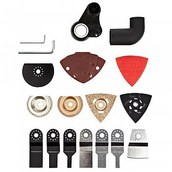 K Opravátoru lze dokoupit extra příslušenství (leštící nástavce, čelní pily, kotouč řezací, pily kruhové, smirkové papíry) za 399 Kč.