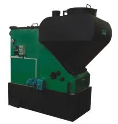 Kotel je řešen jako svařenec z ocelových plechů a trubek. Přenos tepla ze spalovaného paliva do teplonosného média je realizován přes stěny spalovací komory a stěny spalinového výměníku. Palivo je spalováno na horní části válcového roštu. Do jeho vnitřní horní části je cíleně nasáván spalovací vzduch. Na rošt je přiváděno palivo skluzem z násypky paliva. Cyklicky je pak vynášeno do spalovacího prostoru. Zde probíhá intenzivní hoření způsobené tahem spalinového ventilátoru. Vzniklé spaliny jsou vedeny podél stěn spalovacího prostoru do spalinového výměníku. Zde jsou vychlazeny na teplotu cca 180°C. Přes kouřovod - obvykle nerezová poloohebná hadice - jsou spaliny přiváděny na vstupní hrdlo ventilátoru. Tímto jsou pak vháněny do komínového odtahu.