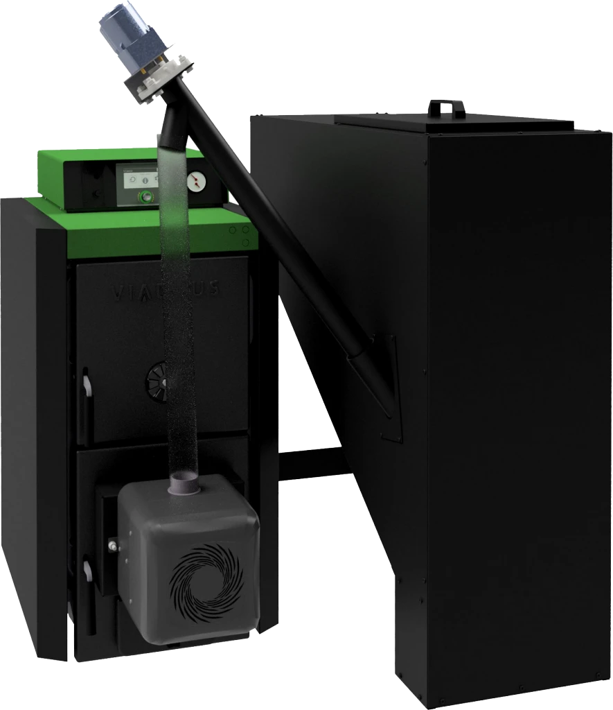 Automatický kotel na dřevní pelety. Je určen k úspornému a ekologickému vytápění s minimálními nároky na obsluhu kotle a možností ovládání přes internet.