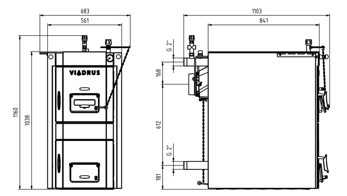 | Rozměry kotle: – výška (vč. podstavce) x šířka (vč. podstavce) | 1240x683 | mm |