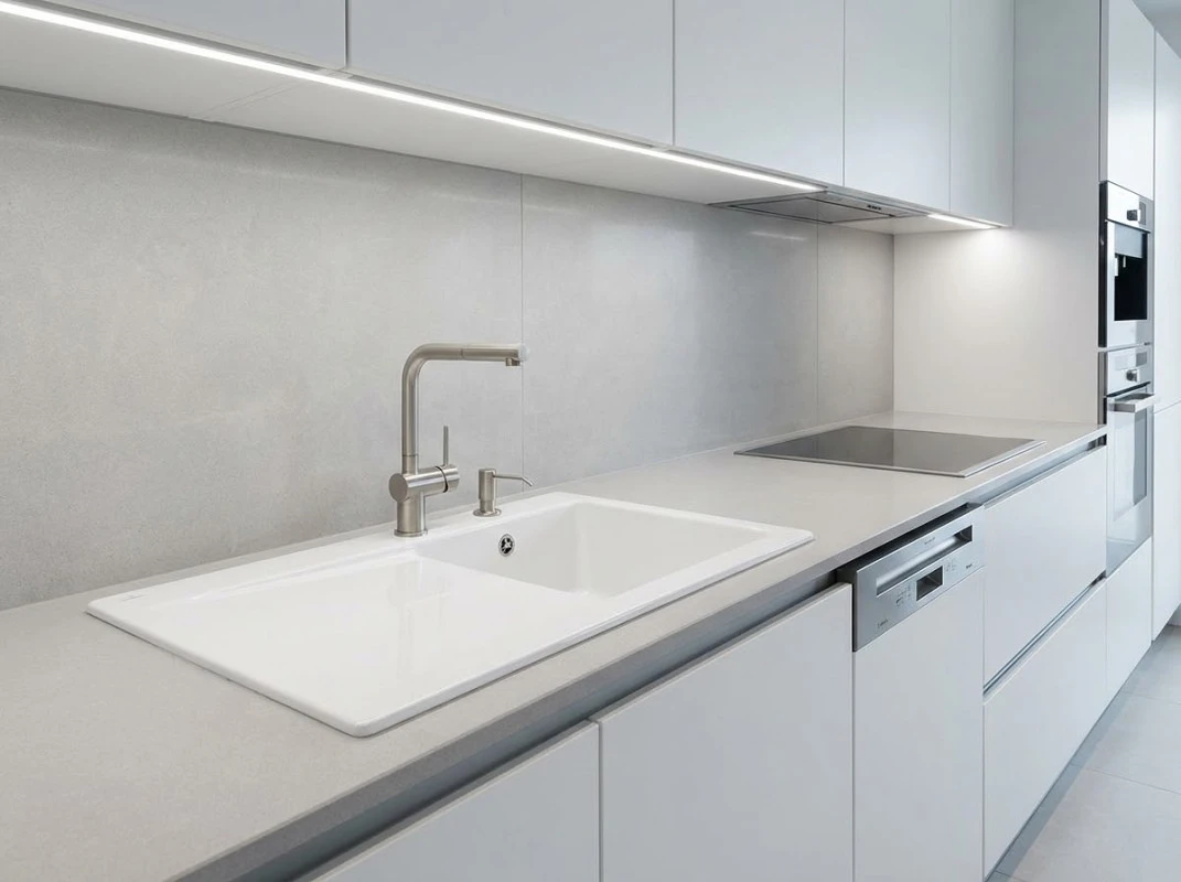 Jemné vlasové prasklinky, které se mohou objevit právě na této spodní, technické části dřezu, vznikají vlivem smršťování materiálu během vypalování. Tento jev je u keramických výrobků tohoto typu běžný a nijak neohrožuje pevnost, vodotěsnost ani celkovou funkčnost dřezu. Tyto mikrotrhliny se navíc vyskytují na neglazované části, která slouží pouze ke konstrukčním účelům (např. připevnění k pracovní desce) a nemají žádný dopad na vzhled ani uživatelský komfort