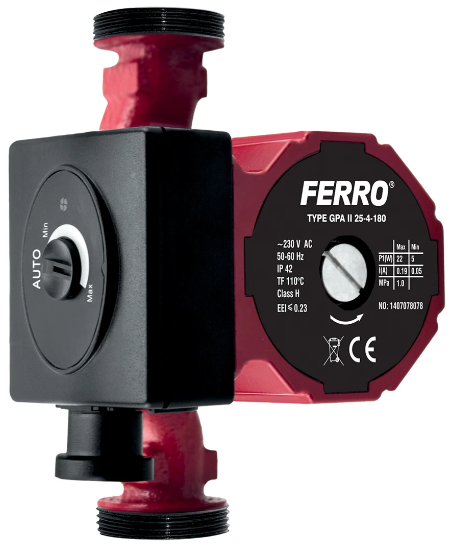Průtok 0,2 - 3 m3/h Výtlačná výška 6,2m Maximální tlak 1MPa El. příkon 5-45W Stavební délka 180 mm P...