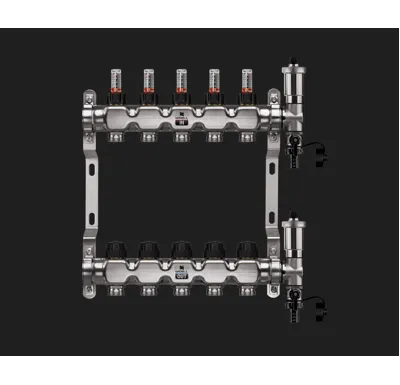 1. Tělo topné vody: Skládá se z těla rozdělovače, průtokoměrů, vypouštěcího kohoutu a automatického odvzdušnění a konzole.